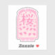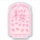A Victor illustration of pink cherry blossom flowers falling to the ground. The text reads cherry blossoms as does the kanji Japanese text in the centre of the pink design..