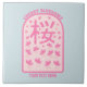 A Victor illustration of pink cherry blossom flowers falling to the ground. The text reads cherry blossoms as does the kanji Japanese text in the centre of the pink design..