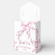 This custom baby shower thank you favour box features pretty pink cherry blossom branches on a white background. The thank you words are written in an elegant hand lettered script.