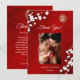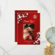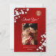 This Chinese wedding thank you card features a gold double happiness symbol, white cherry blossoms on a ruby red background and an elegant classic script. Matching wedding suit available.