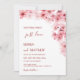 Beautiful pink watercolor cherry blossoms on a white background with bride and groom fist names only. "Nothing fancy, just love" casual wedding quote.