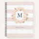 This elegant notebook / journal / sketch book features a monogram and a wreath of pink cherry blossoms on a white background with pink stripes. Change the background colour and personalize it for your needs. You can find matching products at my store.