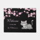 blossoms pink black doormat. Customize this sweet grey kitten door mat with an elegant font!