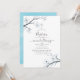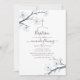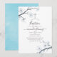 White cherry blossom floral watercolor baptism invitation with sky blue watercolor reverse designed to be quickly and easily customized to your event specifics.