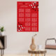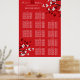 Red/White cherry blossoms or sakura spring flowers and simple circle double happiness. A modern chinese wedding seating chart poster.