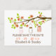 Branch with coral orange and peach cherry blossoms and mason jars spring wedding Save the Date postcard featuring a brown branch of a cherry tree with gorgeous coral orange and peach sakura tree flowers and green leaves. This modern elegant and stylish floral wedding template design is fully customizable and is part of a wedding set perfect for your spring or summer garden wedding.