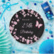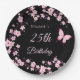 Hot pink butterfly and cute pink cherry blossoms on a black background. With a custom birthday text in an elegant font.