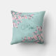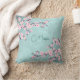 Cherry Blossoms Turquoise Monogram Throw Pillow