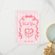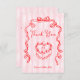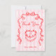 Cherry cake pink coquette bow rainbow border birthday party thank you cards, whimsical birthday party thank you cards, handrawn sketch ribbon border cherry cake party thank you cards
