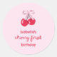 Cherry First Birthday Coquette Bow Favour Classic Round Sticker