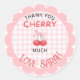 Add the perfect finishing touch to your party favors with these adorable cherry-themed stickers! Featuring a cute pink gingham background, cheerful cherry illustration, and a sweet personalized message — they’re a fun and memorable way to say thank you to your guests.