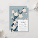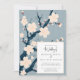 Evoke the essence of modern vintage charm with this Japandi-inspired wedding invitation. Featuring a light blue textured background adorned with a stylistic cherry blossom tree. The off-centred wedding invitation text adds a contemporary touch, blending modern and vintage elements seamlessly.