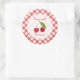Customizable retro stickers for homemade cherry jam, jelly or preserves jars with fresh cherries on red and white gingham tablecloth pattern.