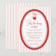 Cherry on Top Coquette Bow Pink Baby Shower Invitation - An adorable design featuring a hand drawn cherry hanging from a coquette bow with hand written and modern typography. The background is trendy pink and white stripes, the perfect way to celebrate your little one. Our easy to use template makes it so easy for your personalize your invitation. Cherry on top Coquette Bow Pink Baby Shower will be part of a Baby Shower Collection.