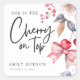 Cherry on Top Pink Bow Coquette Baby Shower Square Sticker