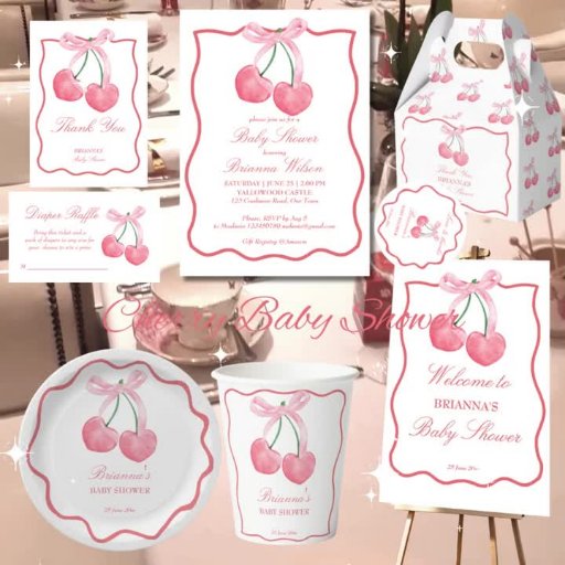Cherry baby shower invitations party suppliesDesigned by Ieva Jenciute