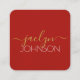 Cherry Red Black Gold Personalized Name Minimalist Square Business Card
