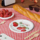 Red Cherry Stems Bakery Paper Plates. My digital design has a simple drawing of cherry stems and paint splatter in red and green on a white background. It’s easy to customize and change the font style, colour and size on the templates I’ve provided. Coordinate with the other items in this fruit collection. If you like what you see, but don’t see what you want, I can edit my designs to print on the items you need. For your order and shipping issues, please contact Zazzle's Customer Support via https://goo.gl/nCgptf