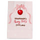 Celebrate your little one’s First Birthday with our delicate cherry sweet birthday theme. Design consists of a pink ribbon and bow, cherries and white daisies. Design is completely customizable. Check out the coordinating stationery and gifts.
