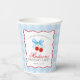 Cherry Sweet Blue Coquette Bow Gingham Birthday Paper Cups