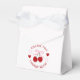 Love is cherry sweet! Bridal shower with cherries tied in a pink bow against a background of pale blush pink and gray