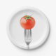 Cherry tomato on a fork paper plate
