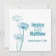 Beautiful simple aqua blue cows parsley outline flowers wedding invitation. Edit this invitation with your names and words. Modern flower drawing in the style of cows parsley Anthriscus sylvestris, also known as wild chervil, wild beaked parsley, keck, or Queen Anne's lace. Unique art and design by Sarah Trett.