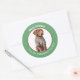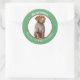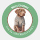 A watercolor image of an adorable little Chesapeake Bay Retriever Dog puppy wearing his winter sweater is at the centre of this cute Holiday sticker. The image is framed in a circular green border which contains your custom text in white. Perfect for Christmas cards, correspondence, and gift packages.