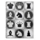 Black and White Chess Pattern Notebook. A stylish chess pieces pattern notebook with king, queen, rook, knight, bishop and pawn on a chessboard. This cool nerdy chess notebook is fully customizable, add your texts and images.