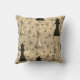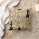 Throw pillow with image of chess pieces in a sepia-coloured background.