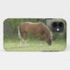 This awesome iPhone case features a beautiful photograph of a gorgeous chestnut brown coloured horse with a shaggy mane and white feet. The horse is grazing on some short green grass in a field.