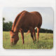 Fully customizable mousepad with a photo of a brown horse grazing in a field.