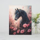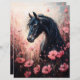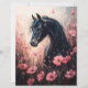 Un cheval majestueux entouré de délicats fleurs sauvages rose vif, capturant la grâce et la beauté de la nature dans un cadre doux et romantique.
