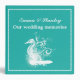 Cheval blanc sur classeur wedding planner d'été vert mer clair, avec un hippocampe blanc et un cadre blanc pointillé sur vert mer clair. Parfait pour l'été, mariages à thème plage.