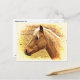 Cette carte postale présente un beau cheval doré brun au soleil.