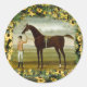 Cheval de course et tableau de jockey d'antiquité entouré d'un champ de fleurs jaunes Black-Eyed Susan. Parfait pour sceller vos invitations à la fête du Kentucky Derby !