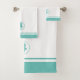 Jolies silhouettes d'hippocampe turquoise et serviettes de bain turquoises.