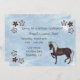 Joli Cheval Brown au chocolat avec Flaxen Mane et Fleurs avec Bleu clair Frotling Arrière - plan Invitation de fête d'anniversaire pour filles