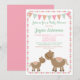 Une mignonne jeune fille à cheval baby shower invitation. Dans la pêche, rose et menthe avec une maman et bébé cheval au fond.