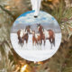 Chevaux De Peinture De Baie Pinto En Neige D'Hiver