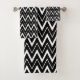Serviettes de bain rayées modernes en chevron noir et blanc.