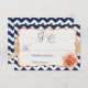 L'amour est en fleurs ! Ces charmants chevrons jardin RSVP insert cartes mêlent chic boho avec élégance glamour pour célébrer votre belle occasion. Parfait pour toute réponse, insertion, RSVP, menu ou autre petite carte de conception, vous pouvez personnaliser le texte et les initiales optionnelles sur cette conception pour convenir à votre style. Pour votre propre design classique marine bleu & carte corail, les graphiques floraux & arrière - plan peuvent même être changés si nécessaire. Paire avec nos invitations assorties et étiquettes de adresse pour un ensemble fini. Conception © Lil Duck Duck, LLC