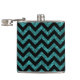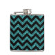 Hip and trendy Chevron Glitter Look Flask. This cool flask features a chevron zig zag pattern on top of a digital art turquoise glitter background.