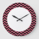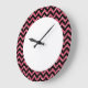 Hip and trendy Chevron Glitter Look Clock. This cool clock features a chevron zig zag pattern on top of a digital art pink glitter background. Add text to this design to give it a personal touch.