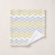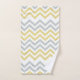 Une serviette de bain moderne et branchée en chevron, aux lignes jaunes et grises en zigzag blanc.
