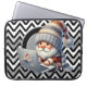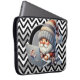 A Chevron Grey, White And Black Pattern Neoprene Laptop Sleeve With A Laptop Gnome