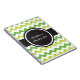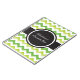 Gradient lime green chevron pattern with centre black circle for personalization text.