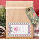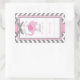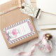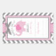 Grey and white chevron print with pink accents and 3D-look polka-dot bow with pink elephant and bird book plate label design.