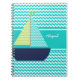 It's easy to personalize this colourful chevron stripe and sailboat notebook with a name before ordering! Features aqua and white chevron stripes with a navy blue sailboat with chevron stripes sails of blue and lime green with white and an area you can easily customize with a name!