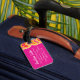 Chevron zig zag bright pink named luggage tag